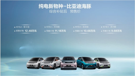 9.68 万元 -12.48 万元,海洋车系首款车型,比亚迪海豚正式启动预售